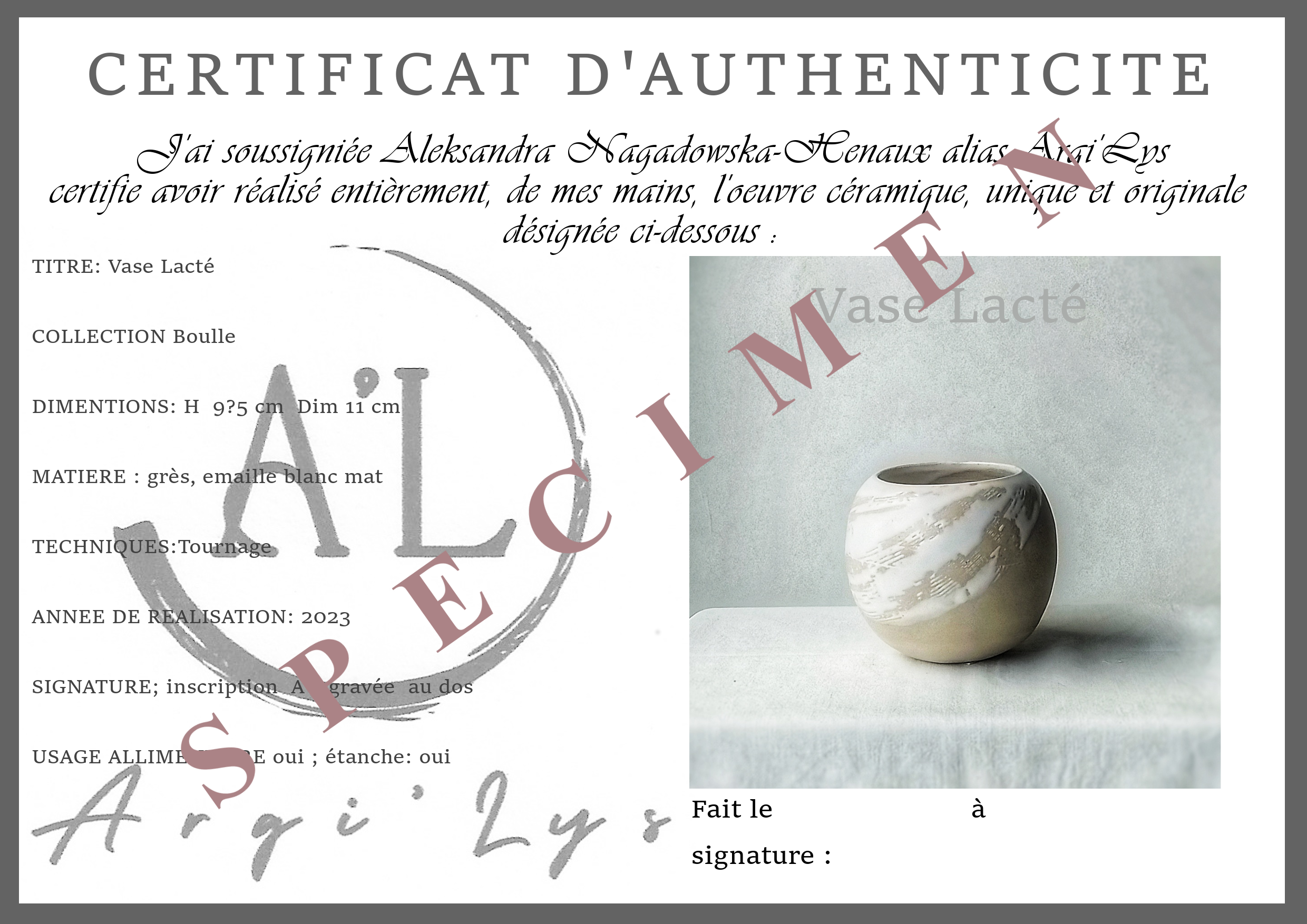 Toutes les céramiques sont façonnées à la main, tournées ou modelées, et accompagnées d’un certificat d’authenticité.
